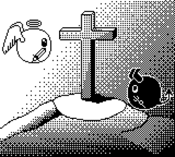 Make a 160px by 144px scene for the game boy, using only black and white pixels.